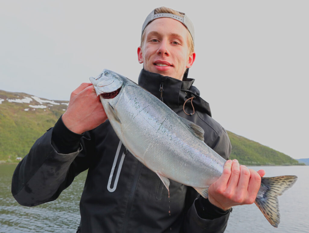 Every other year, pink salmon arrive in our fjord. This year was a pink salmon year, and they came in large numbers at the end of June — great fighters on light tackle and a delicious eating fish!